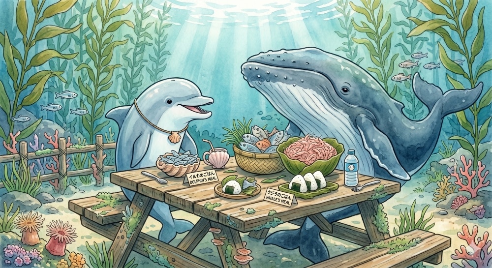 以前の自由研究で娘と取り組んだちりめんモンスター探しでも、ヒゲクジラがオキアミを大量に飲み込む話題が出てきましたが、あの巨大な生き物は「味わう」ことをほとんどしていないのです。