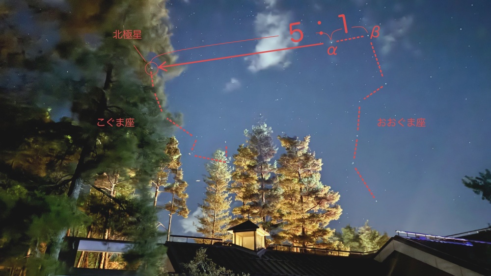 北極星をさがすコツ ― αとβの延長線の5倍先