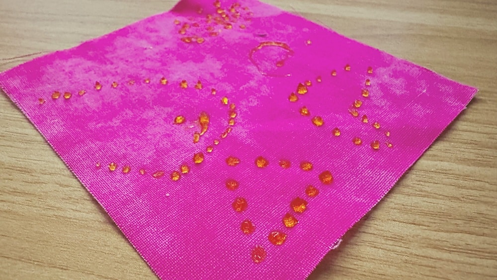 布用絵の具の「ペベオ」は、立体的に盛り上がった線や点を布につけることができます。