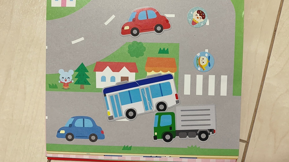 最初は、祖父母の家への移動時間など、スキマ時間を埋めるためのグッズとして渋々、シールと貼るための台紙を与えていました。