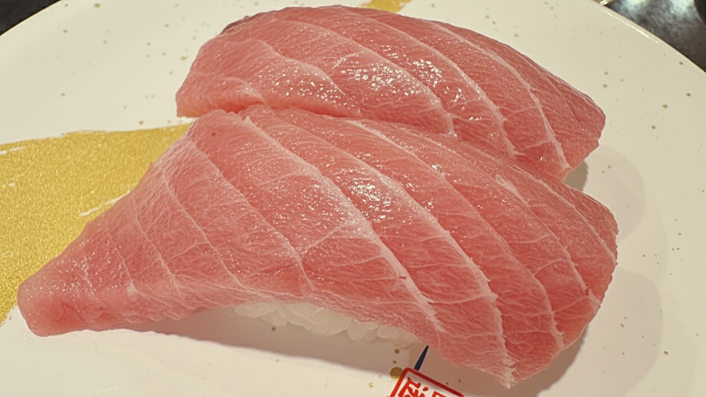中トロは、淡いピンク色で、サシ(脂の筋)がきれいに入っています。