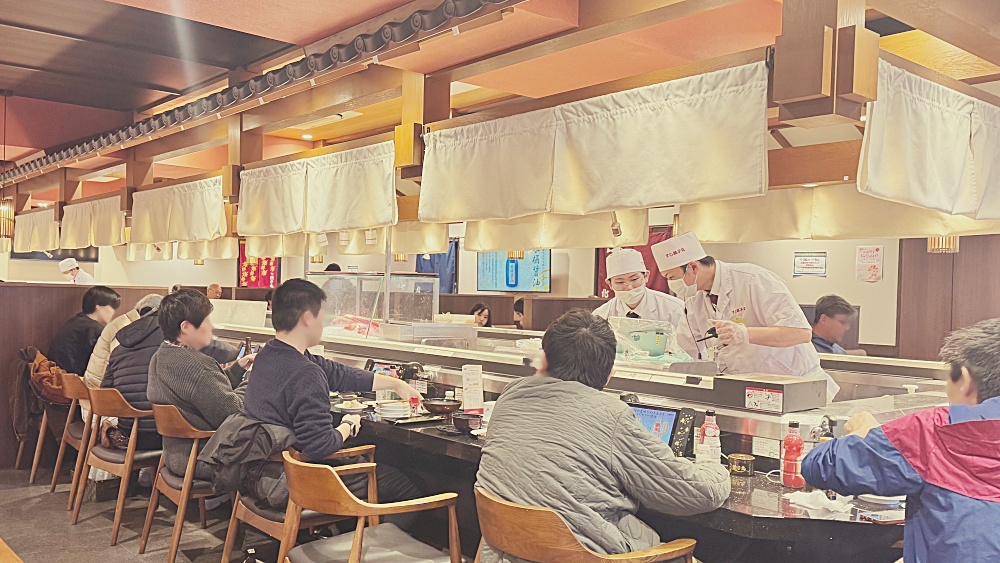 100円均一のお店とは違い、職人さんが目の前でお寿司を握ってくれるのが特徴。