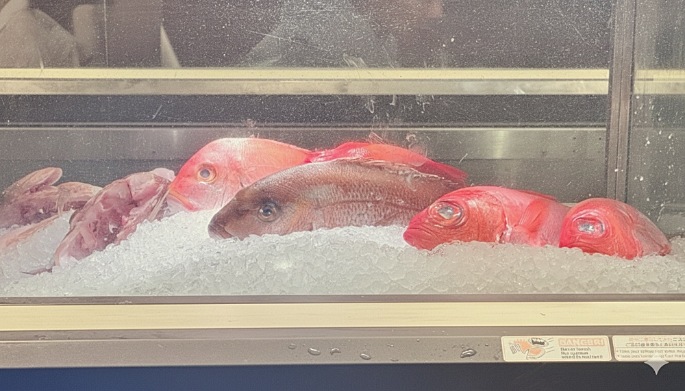 娘が最も興奮したのは、店内のショーケースに並んだ新鮮な魚たち。