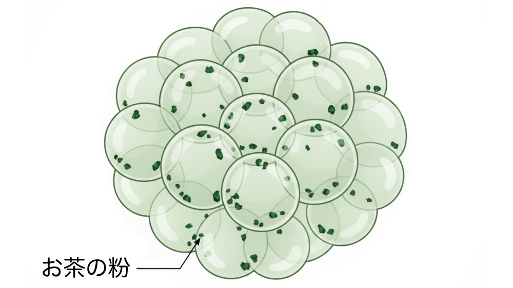 お茶には天然の界面活性物質であるサポニンが含まれており、これが泡を安定させる主要因と考えられます。
