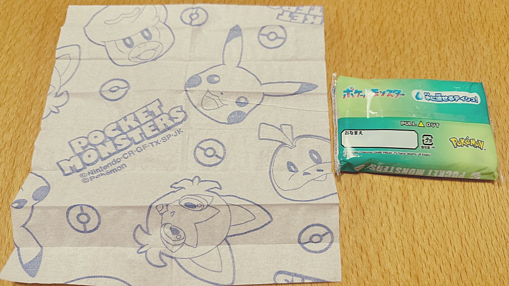 ハンドタオルを忘れてしまい、ポケットティッシュで手を拭いてもらいました。