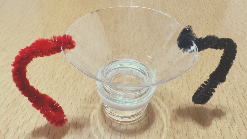 透明カップ3つに水を入れて準備完了