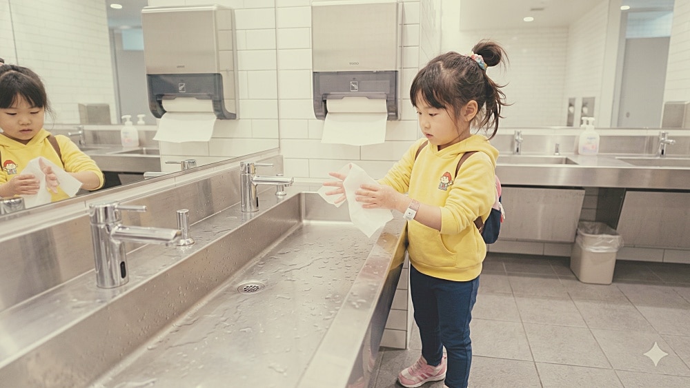 旅行先のトイレで、娘が手を洗ったあとのこと。