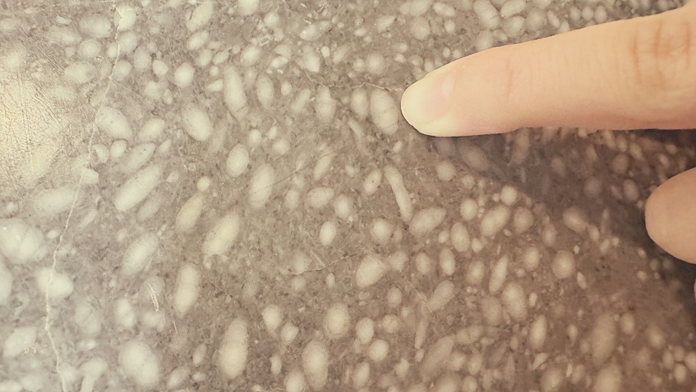 中でも目を引くのが「フズリナ」の化石です。