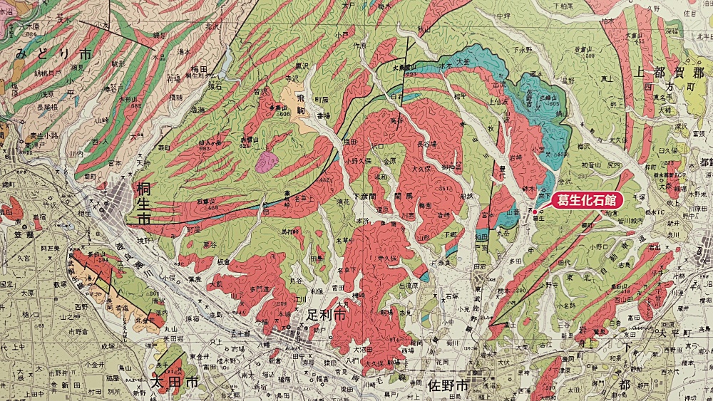 「ひ」の字型の石灰石の分布があらわれることが確認できます。