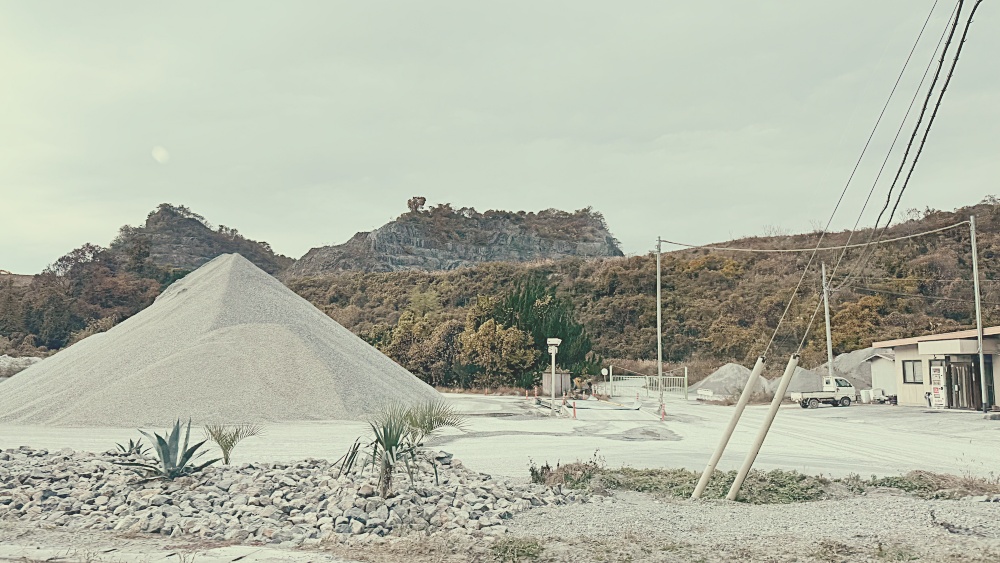 この山は、採掘した石灰石を砕いて粒度ごとに分けた「砕石」です。